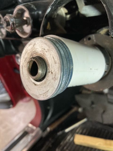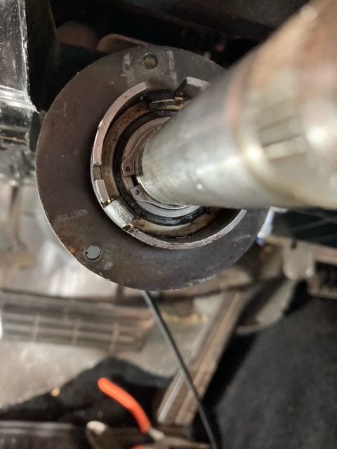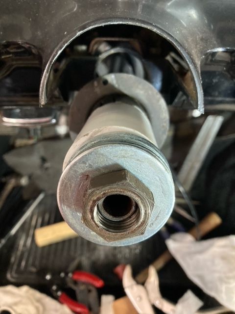 Mike Marmorale writes: I made a tool out of pvc pipe to push the column down and pull the shaft up at the same time. This enabled me to get the snap ring in. I also stacked the washers and used the nut to get the pull and push I needed to expose the groove for the snap ring.
