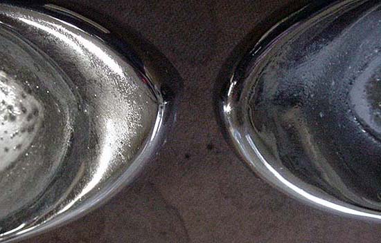 Here are the right and left tail light housings from a 58 Chrysler placed nose to nose. The driver side is on the left, the passenger side on the right.