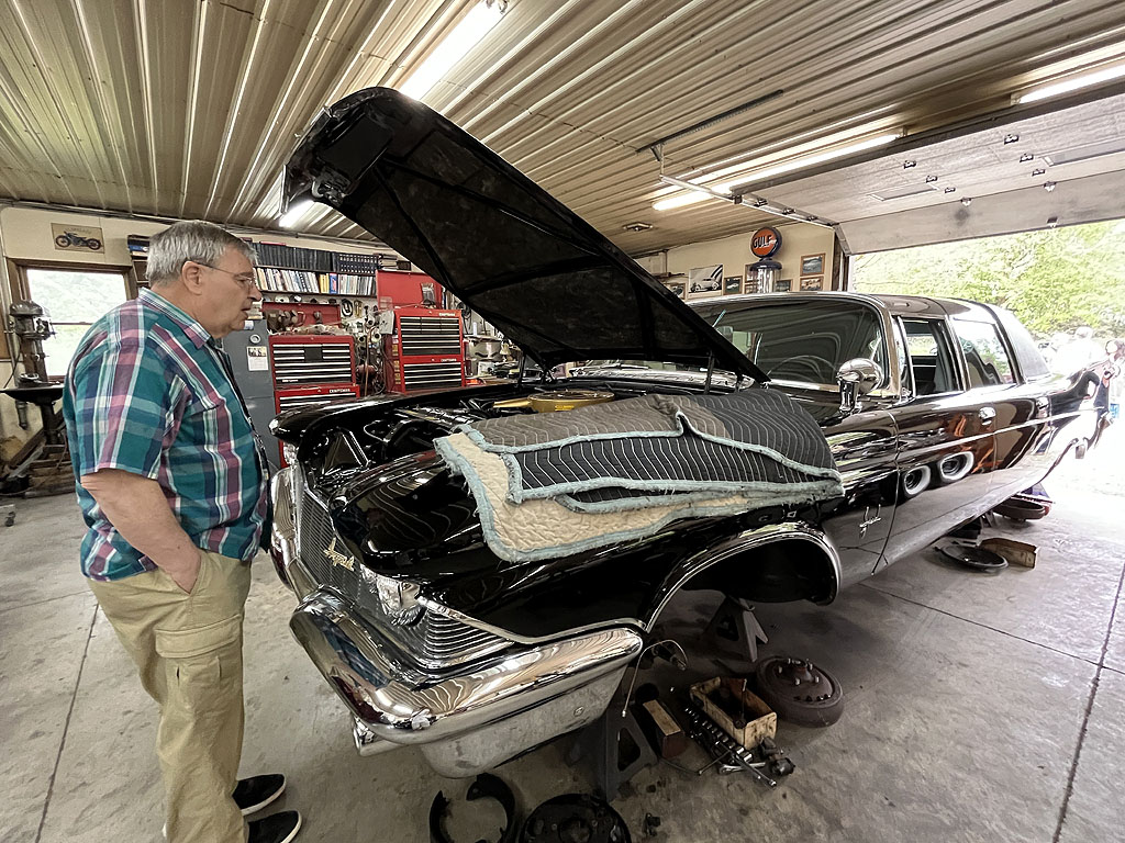 Doug Mayer watches as the Ghia gets brake work