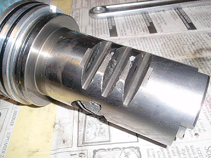 Worm shaft and ball housing along with internal valves removed. The teeth were badly worn on this also.